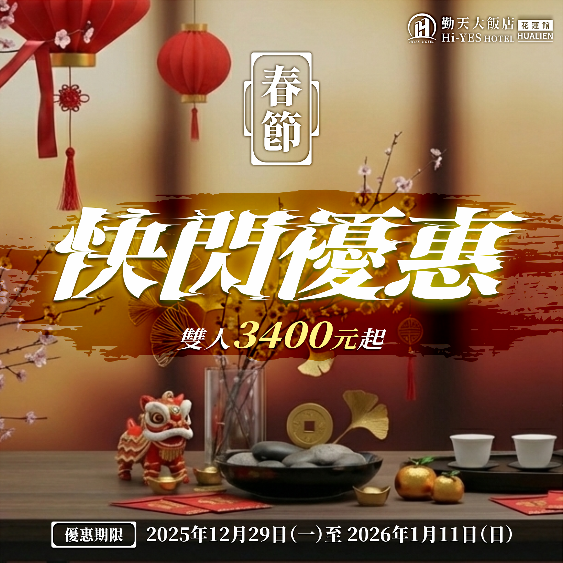 訂房時間:2025年12月29日(一)至 2026年01月11日(日)