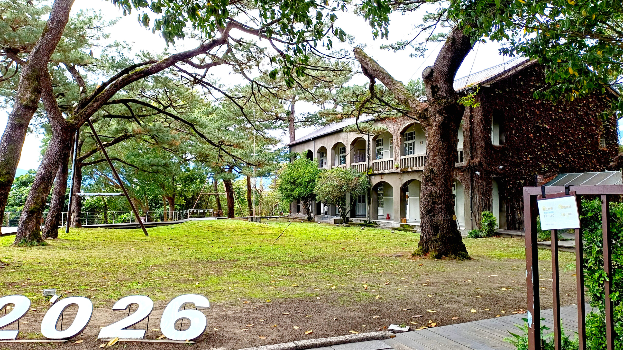 松園別館位於花蓮市美崙山麓,建於1943年,曾為軍事指揮中心。園內擁有數十棵高聳入雲的百年黑松老樹,與灰色的歷史建築相映成趣,營造出靜謐幽雅的氛圍。此處地理位置優越,擁有能俯瞰美崙溪入海口、花蓮港與太平洋的絕佳視角。園區目前已轉型為藝文空間,內設有咖啡館,旅客可在此享受慢活時光,是感受花蓮人文歷史與自然美景交織的必訪之地。