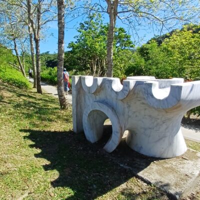 區域內還有特殊的單面山地形,一面緩坡,一面陡峭,搭配隆起的珊瑚礁、海蝕溝、海蝕崖等,造就壯闊地貌。此外,石梯坪的潮間帶生態豐富,是觀察海洋生物的絕佳地點,區內設有完善的露營區和步道,非常適合遊客在此聽濤觀星,親近大自然。